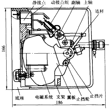 繼電器由翼板、電磁系統(tǒng)、接點(diǎn)系統(tǒng)、支架、底座、外罩等主要部件組成。
