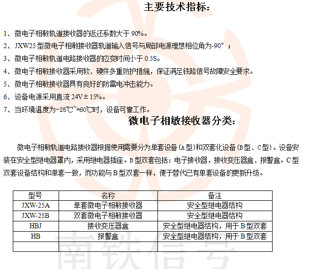 HBJ相敏變壓器配合JXW-25A相敏軌道電路接收器以微處理機(jī)為基礎(chǔ),采用數(shù)字處理技術(shù)對軌道電路信息進(jìn)行分析、檢出有用信息,除去干擾,完成電化區(qū)段25Hz相敏軌道電路接收功能。